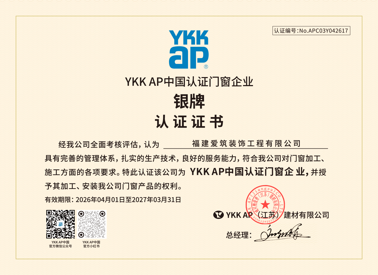 铝合金门窗 门窗 重庆 重庆峨克门窗幕墙工程有限公司 2026/4/1-2027/3/31