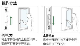 YKK AP全半开配件可使窗户处于半开及全开两种状态: