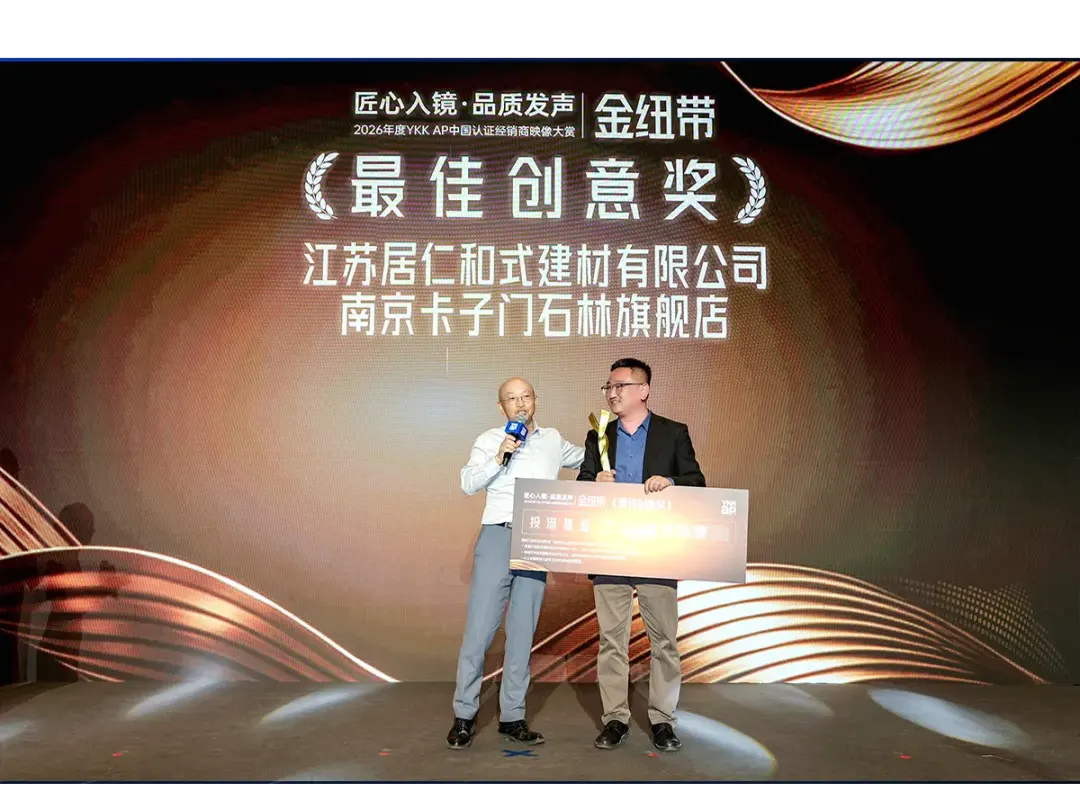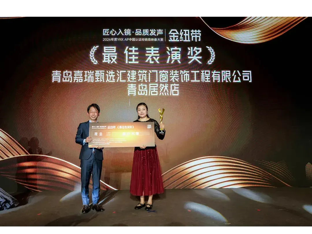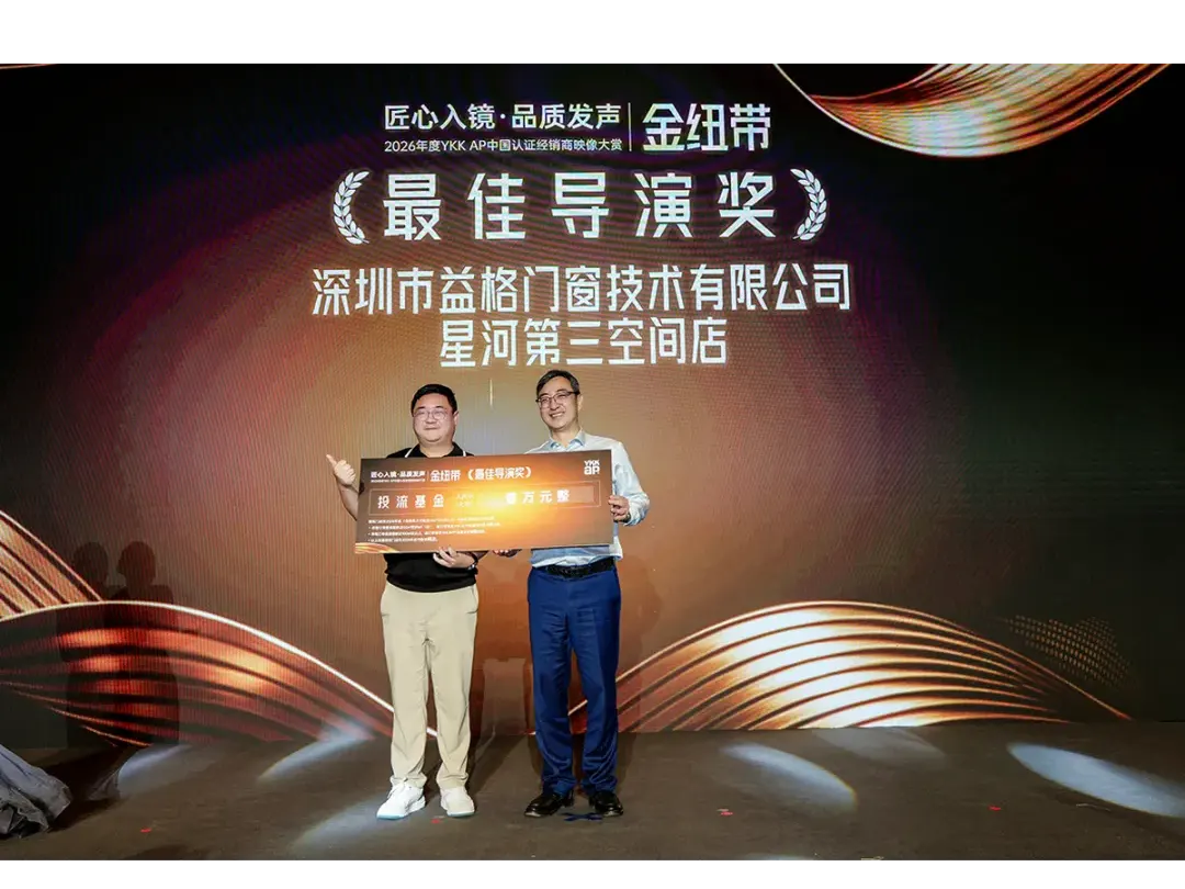 晚宴期间,2026年度YKK AP中国认证经销商映像大赏“金纽带奖”正式揭晓,在视频创作中表现突出的经销商小伙伴荣获最佳创意奖、最佳导演奖、最佳表演奖。