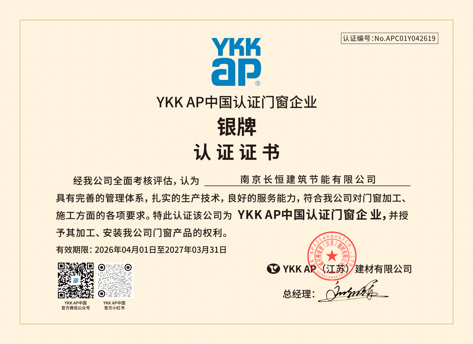 铝合金门窗 南京 南京长恒建筑节能有限公司 2026/4/1-2027/3/31